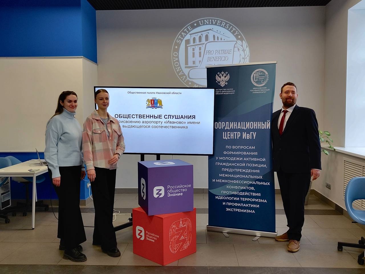 11 февраля в «Точке кипения – ИвГУ» в интерактивном формате прошли общественные слушания, посвященные выбору имени выдающегося соотечественника для аэропорта «Иваново». Это событие собрало неравнодушных студентов, для которых важно сохранение исторической памяти и увековечение имен наших выдающихся земляков.