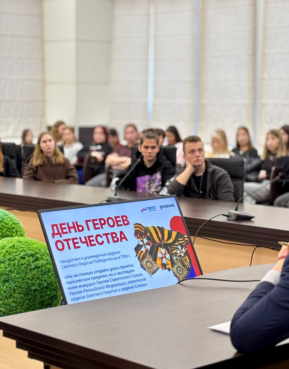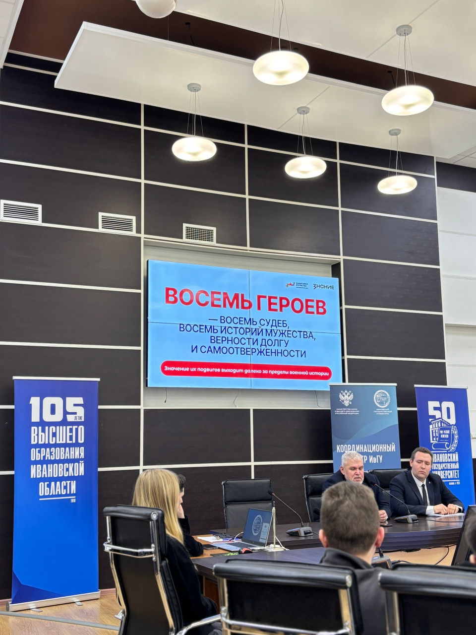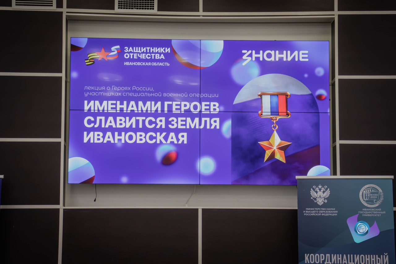 В преддверии праздника в Ивановском государственном университете в рамках деятельности Координационного центра ИвГУ и Российского общества «Знание» состоялась лекция "Именами героев славится земля Ивановская" о Героях России, участниках специальной военной операции.