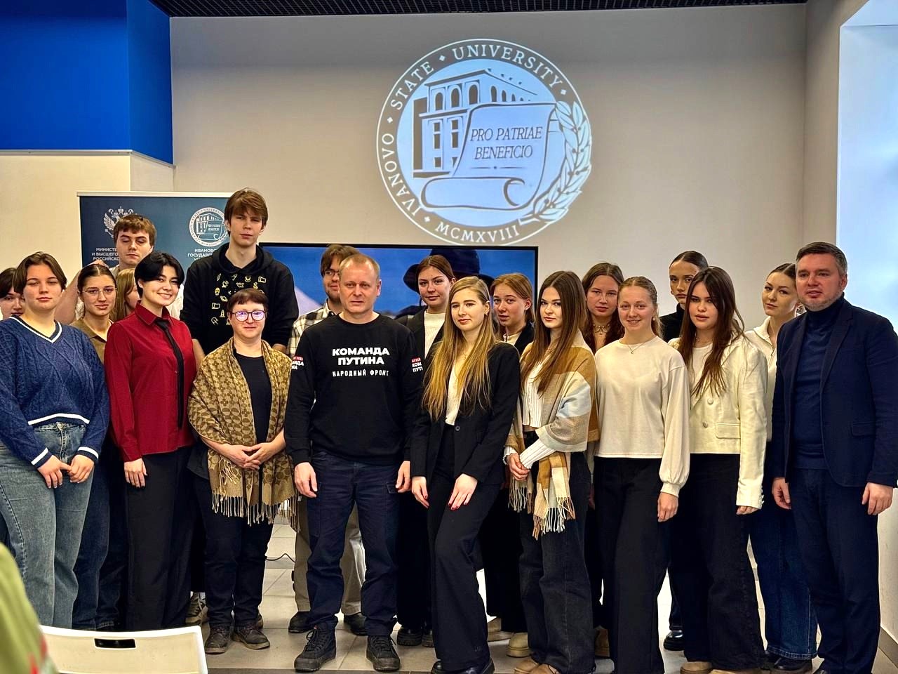 На базе Ивановского государственного университета в аудитории партнера университета АО «Альфа-банк» состоялась встреча членов военно-патриотического клуба «Белые волки» ДОСААФ России г. Иванова с участником Специальной военной операции, кавалером ордена Мужества Алексеем Таутановым.