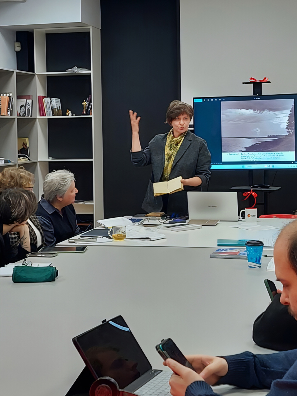 В этот же день состоялась встреча с известным издателем Ольгой Владимировной Епишевой, которая поделилась уникальным опытом работы с рукописями военных лет. Издатель рассказала о том, как собираются и издаются книги, основанные на исторических документах, таких как военные письма, личные дневники и фотографии, которые родственники ветеранов передают для дальнейшей работы. Ольга Владимировна показала несколько книг, выпущенных на основе таких историй, и рассказала о новых проектах, которые вскоре увидят свет.