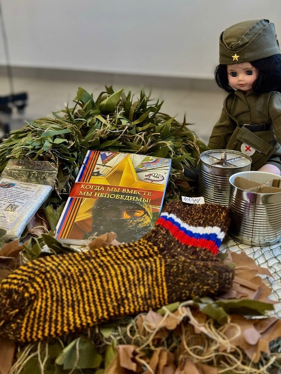 Ольга Владимировна рассказала о работе отделения и показала то, что они делают для помощи пострадавшим в Курской области, а также для солдат, находящихся в зоне боевых действий. Изготовленные вручную маскировочные сети, нашлемники, носки, шарфы и окопные свечи имеют большое значение на фронте и помогают солдатам в самых трудных условиях. Бойцы на передовой высоко ценят обереги и детские рисунки, которые посылают им мирные жители.