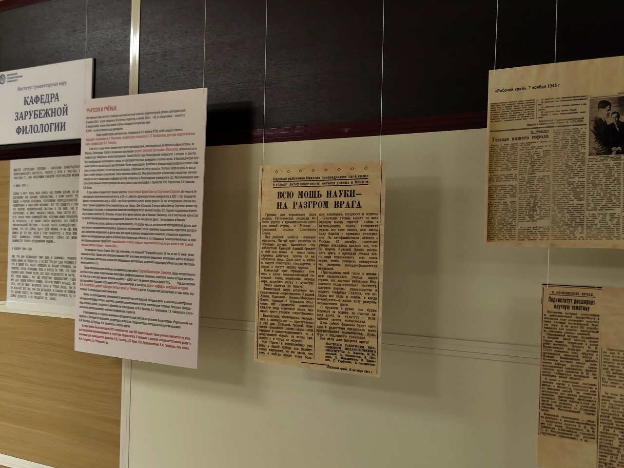 7 мая в 6-м корпусе Ивановского государственного университета открылась выставка "Пусть помнят те, которых мы не знаем...", посвящённая истории Ивановского педагогического института в годы Великой Отечественной войны.