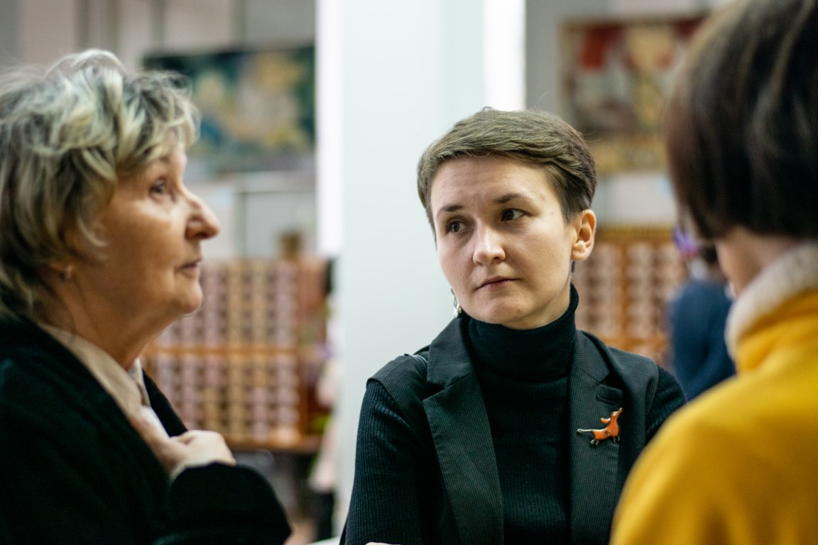 Sofya Lukyanova also commented on some of the works, noting the subtle, positive and very bright perception of the world, exquisite color harmony and subtle stylization, bizarre plot and allusiveness, but most importantly - a combination of childishly direct lightness and deep philosophy, which directly leads to actual life issues, including acutely modern (that's why the question was about the national code, because the geopolitical and cultural situation of recent decades calls into question the fate of sovereign nations and states). This simultaneously topical and philosophical pathos was supported by the artist herself, in her speech updating the content of several works and emphasizing the urgency of our common conversation about modern culture – after all, a serious dialogue of all real cultural forces interested in our common future is needed.