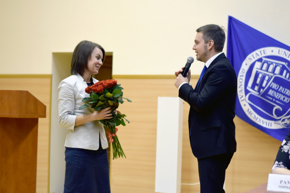 Taking into account the opinion of the student community, Ksenia Kumirova, Associate Professor of the Department of Physical Culture and Life Safety of IvSU, Master of Sports of Russia in Sambo, was nominated for the post of President of the Student Union. Speaking to delegates and guests of the conference, K. Kumirova told about herself and her active participation in the events held by the Student Union. Experience of activity of Student Union allowed her to identify priority areas of work: information support members of Student Union, clarification of the measures taken by the Student Union to implement the goals and objectives; informing members about the activities of the Student Union organization, its elected bodies, the actions of the parent bodies of the Studeny Union; formation of positive image of the Union. K. Kumirova also came up with the idea of creating social passports for each student (because the Student Union needs to help in the recovery plan, creating living conditions, etc.), stressed the importance of forming the moral-psychological atmosphere in the organization ("Many students do not realize the power behind the Student Union") and the necessity to take measures aimed at forming the image of the organization, as well as cultural activities.