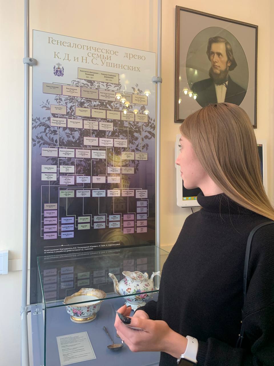 Интересным был рассказ заведующей музеем Татьяны Николаевны Гавриловой о потомках Константина Дмитриевича. Особенно студентов тронула история о правнучке ученого Ирине Хале – художнице, которая иллюстрировала книгу сказок Константина Дмитриевича.