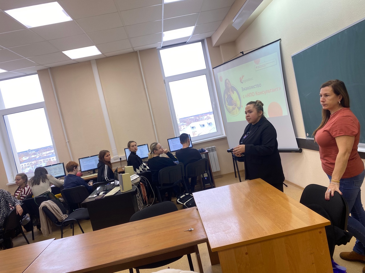 Специалист по работе с персоналом Елена Ловцова на встрече рассказала студентам о компании Консультант и предстоящем конкурсе «Образование и твоя карьера»! Конкурс направлен на повышение профессионального уровня студентов в решении правовых вопросов с помощью справочно-правовой системы «КонсультантПлюс» и на развитие правовой грамотности.