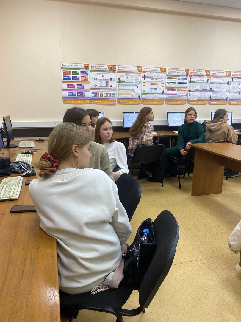Елена Николаевна продемонстрировала студентам возможности справочно-правовой системы «КонсультантПлюс» для учебы и повседневной жизни.