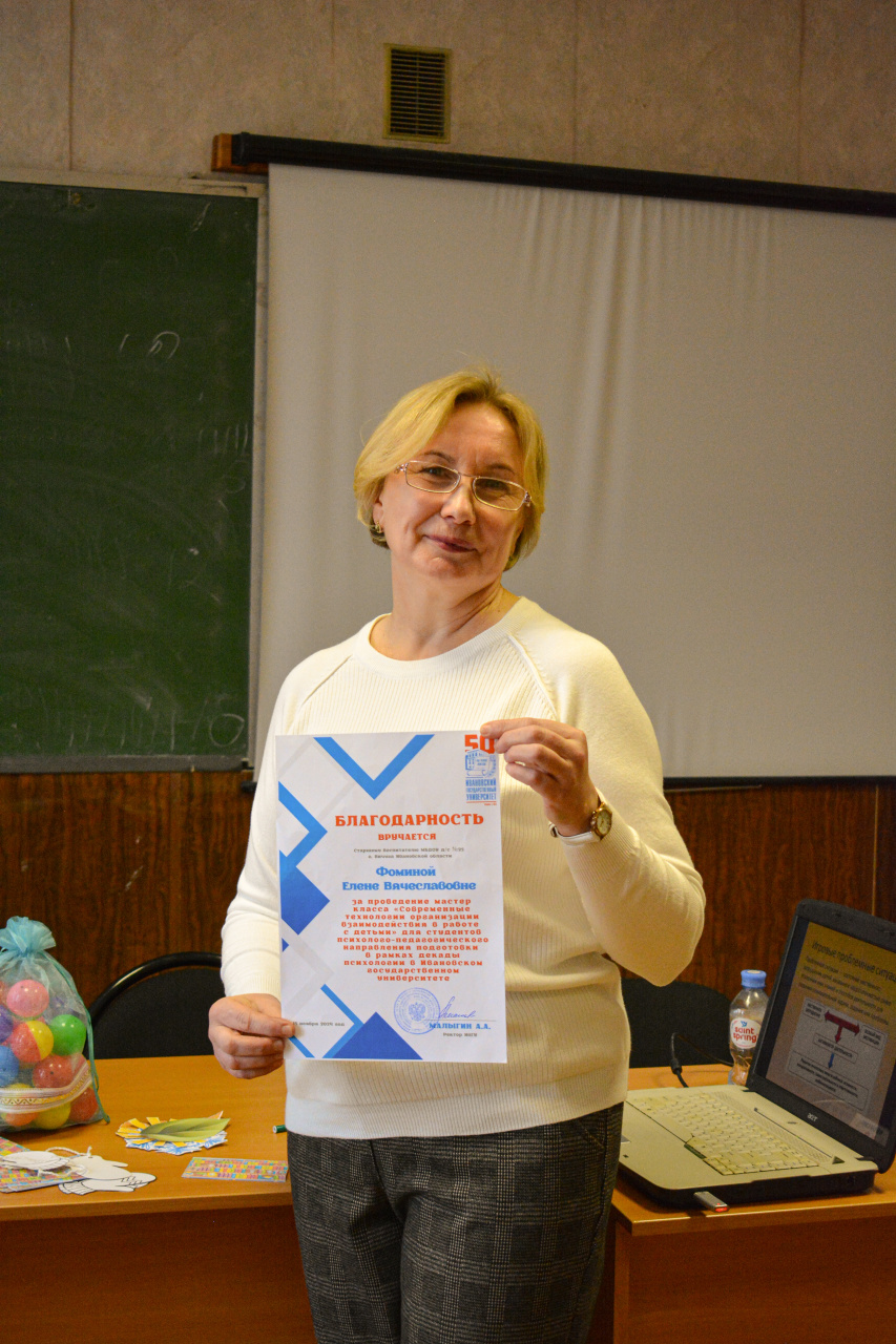 Мероприятие проводила Елена Вячеславовна Фомина, старший воспитатель детского сада №25 г. Вичуга. На мастер-классе студенты узнали о специфике тимбилдинга в работе педагога-психолога, возможностях применения игр и упражнений на сплочение и командообразование, в том числе при организации работы со взрослыми (педагогами, родителями, работниками фирмы). Студенты смогли принять участие в разнообразных практических упражнениях и почувствовать на себе их эффективность. Также на мастер-классе были представлены интересные приемы по развитию познавательной активности детей, социализации и коммуникативной деятельности – квест, головоломка, ребус, виммельбух и многое другое. Студенты принимали активное участие в обсуждении представляемых упражнений – предлагали варианты их модификации и применения в работе с детьми. Такие мероприятия очень важны в подготовке будущих педагогов-психологов, поскольку позволяют получить знания, важные для работы по профессии, а также практический опыт участия в мастер-классе специалиста.