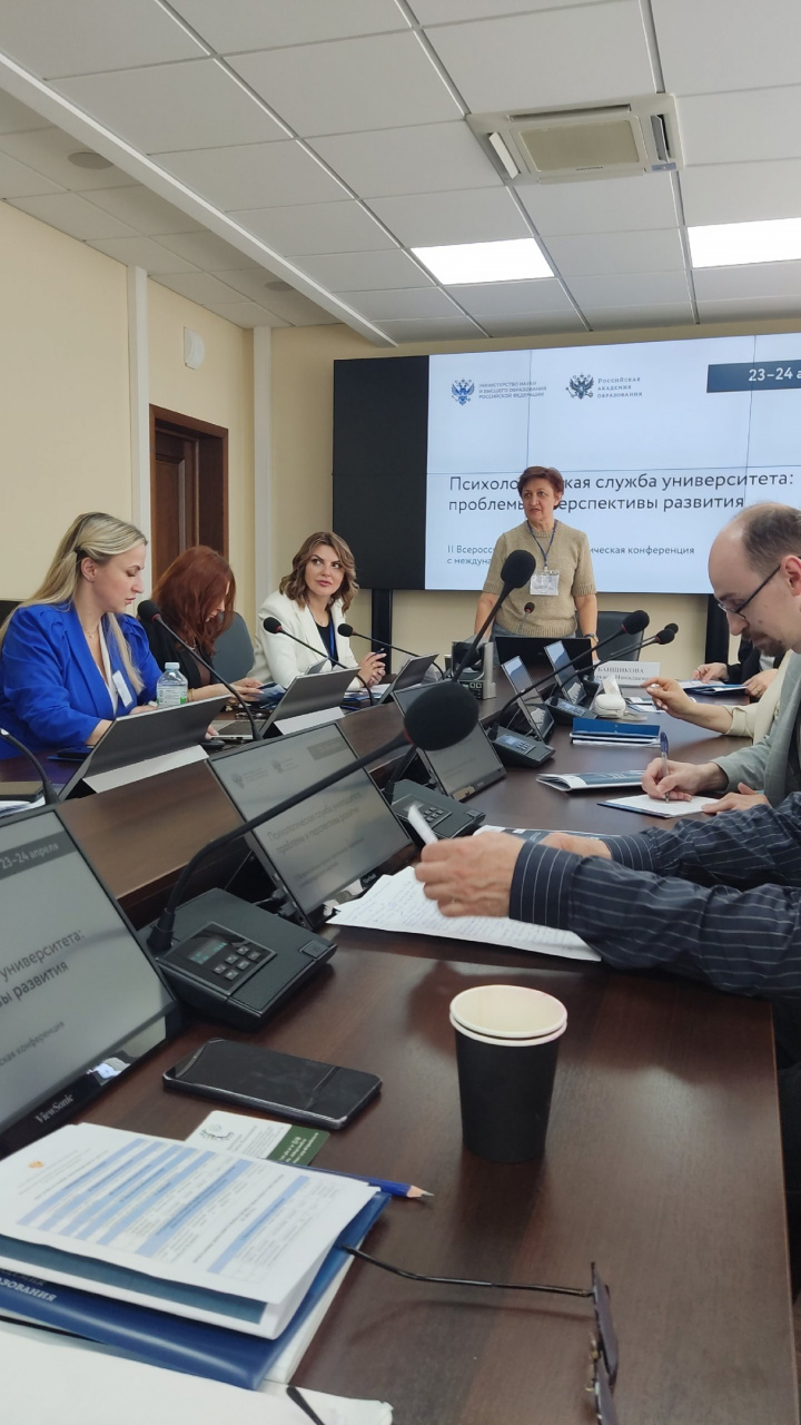 Елена Игоревна выступила с докладом " Социально-психологическое сопровождение работы кураторов академических групп вуза". Актуальность темы подтверждается ростом мероприятий, проводимых психологическими службами различных вузов страны, связанных с психологическими аспектами работы с профессорско-преподавательским составом. Значимость данного направления была подчёркнута руководителем ФРЦ Еленой Юрьевной Брель при подведении итогов первого дня конференции.