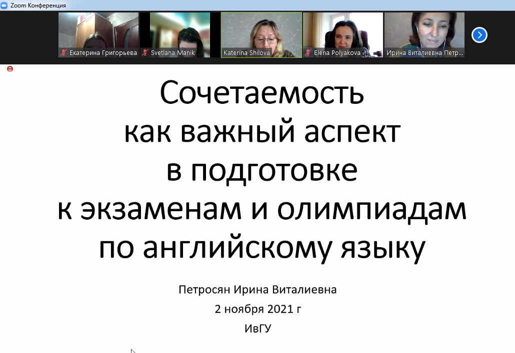 В этом году семинар, организованный по инициативе кафедры зарубежной филологии ИвГУ и Ивановской региональной ассоциации преподавателей английского языка «IVELTA» (Ivanovo English Language Teachers Association), прошел в онлайн-формате, что было обусловлено ограничениями на проведение массовых мероприятий в связи с неблагоприятной эпидемиологической обстановкой. Но настоящим профессионалам, искренне заинтересованным в своем деле, ничто не может помешать. И семинар – как и всегда – оказался действительно массовым. В нем приняли участие почти сто человек!