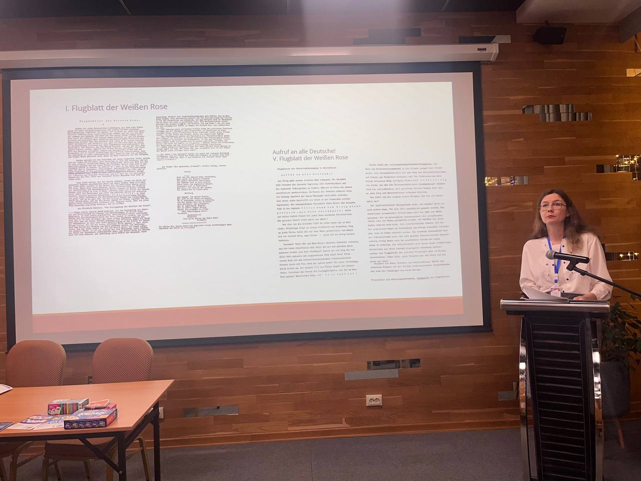 Активное участие в работе конференции приняла делегация кафедры зарубежной филологии Ивановского государственного университета. Преподаватели представили результаты своих исследований на секционных заседаниях. Заведующий кафедрой, к.ф.н., доц. Е.А. Шилова поделилась опытом организации студенческой проектной деятельности на иностранных языках, сделав акцент на ее воспитательном потенциале. К.ф.н., доц. Н.Ю. Хорецкая выступила с докладом о специфике перевода военной лексики на примере мемуаров Маршала Советского Союза А.М. Василевского «Дело всей жизни». К.ф.н., доц. М.В. Ополовникова осветила проблему формирования гражданской ответственности через изучение истории антифашистского сопротивления во Второй мировой войне, приведя в качестве примера действовавшее в 1942–1943 годах в Мюнхенском университете студенческое движение сопротивления «Белая роза». К.ф.н. И.В. Кокурина представила научному сообществу анализ лингвокультурного концепта «воспитание / Erziehung» в немецком языковом пространстве. Все выступления вызвали живой интерес и продуктивное обсуждение среди коллег.