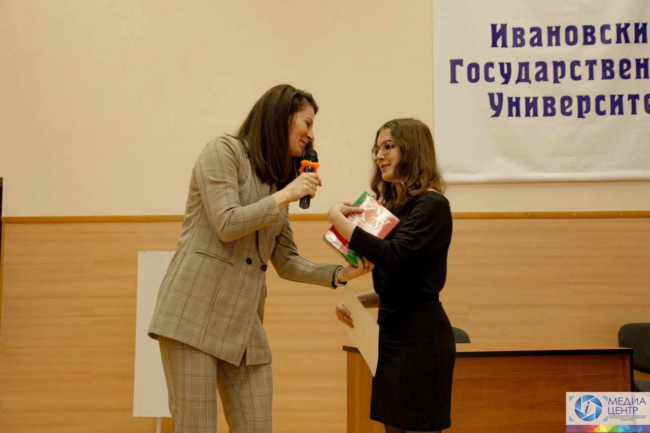 Победителем конкурса чтецов была единогласно выбрана Анастасия Парфёнова, студентка 2-го курса направления «Филология (Зарубежная филология)» – ее вдохновенное прочтение монолога Жака «Весь мир – театр…» из известной комедии У. Шекспира «Как вам это понравится» никого не оставило равнодушным. Дипломами были также отмечены Сударева Дарья и Абрамова Дарья (1-й курс), Лобанова Елизавета и Келлер Луиза (2-й курс), которые прочитали наизусть на языке оригинала сонеты великого Барда, монолог Джульетты из трагедии «Ромео и Джульетта», монолог Гамлета из одноименной трагедии.