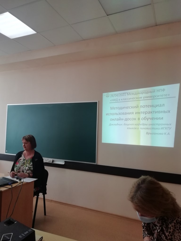 Большой интерес вызвал доклад Директора Гуманитарного института ИГХТУ, д.ф.н., профессора Н.К. Ивановой, посвященный визуализации учебного материала при преподавании английского языка дистанционно (нейролингвистические и дидактические аспекты). Многие докладчики: Е.А. Вансяцкая (ИвГУ), К.А. Врыганова (ИГХТУ), В.В. Ганина (ИГХТУ), Н.Г. Лаврентьева (ИвГУ), С.Л. Фокина (ИвГУ), В.Н. Четверикова (ИвГУ) – отметили в своих выступлениях все более возрастающую роль цифровых платформ, таких как Quizlet, Google Talk to Books, Canva, Padlet.com, которые наиболее активно стали использоваться в период пандемии, хотя и до 2020 г. многие преподаватели иностранных языков активно использовали их в своей работе. М.В. Избицкая и А.Ю. Благовестный (ИГХТУ) рассказали о таком новом формате подачи информации в интернете, как Digital stories. Записанное студентами выступление в рамках научного дискурса объемом 3–5 минут обязательно содержит визуальные средства (инфографику, фото, видео). Выступающие отметили, что такие инструменты позволяют как работать с начинающими изучать язык, так и изучать специальную лексику на более продвинутой ступени обучения, поддерживать интерес к изучению иностранного языка с помощью новых технологий. Из доклада А.Ю. Цымбал (ИвГУ) преподаватели узнали о том, что в России существуют свои специальные сервисы (например, engListening.ru, Top-Notch English, fenenglish.org), которые преподаватель может успешно использовать на занятиях по обучению аудированию, чтению и говорению на уровне бакалавриата.