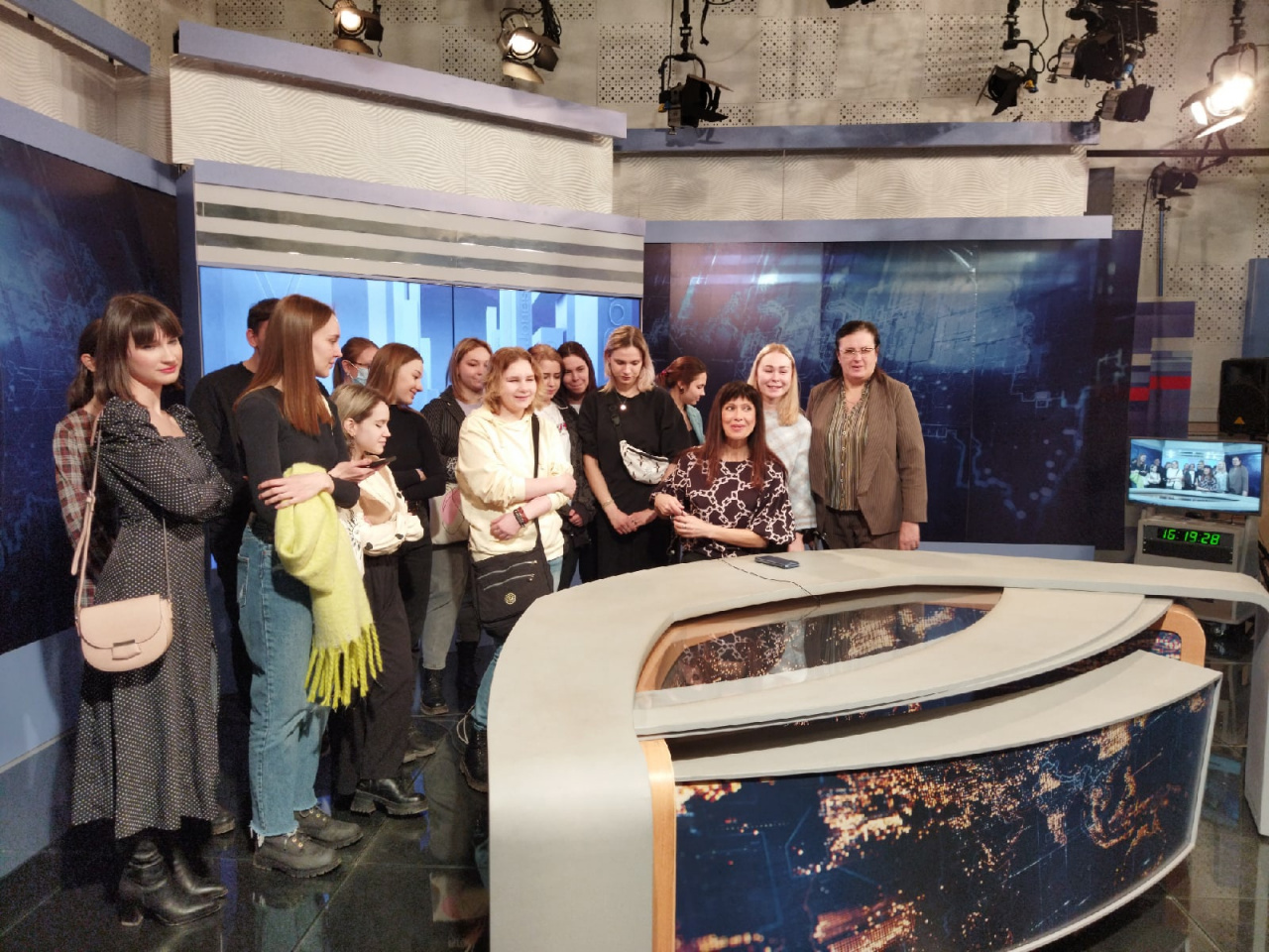 Конечно, полутора часов, посвященных экскурсии, будущим медийщикам оказалось мало. Поэтому на прощание завязался проблемный разговор: как попасть на работу на ТВ? на какую должность может претендовать выпускник отделения журналистики, рекламы и связей с общественностью? как понять, что эта профессия тебе подходит?