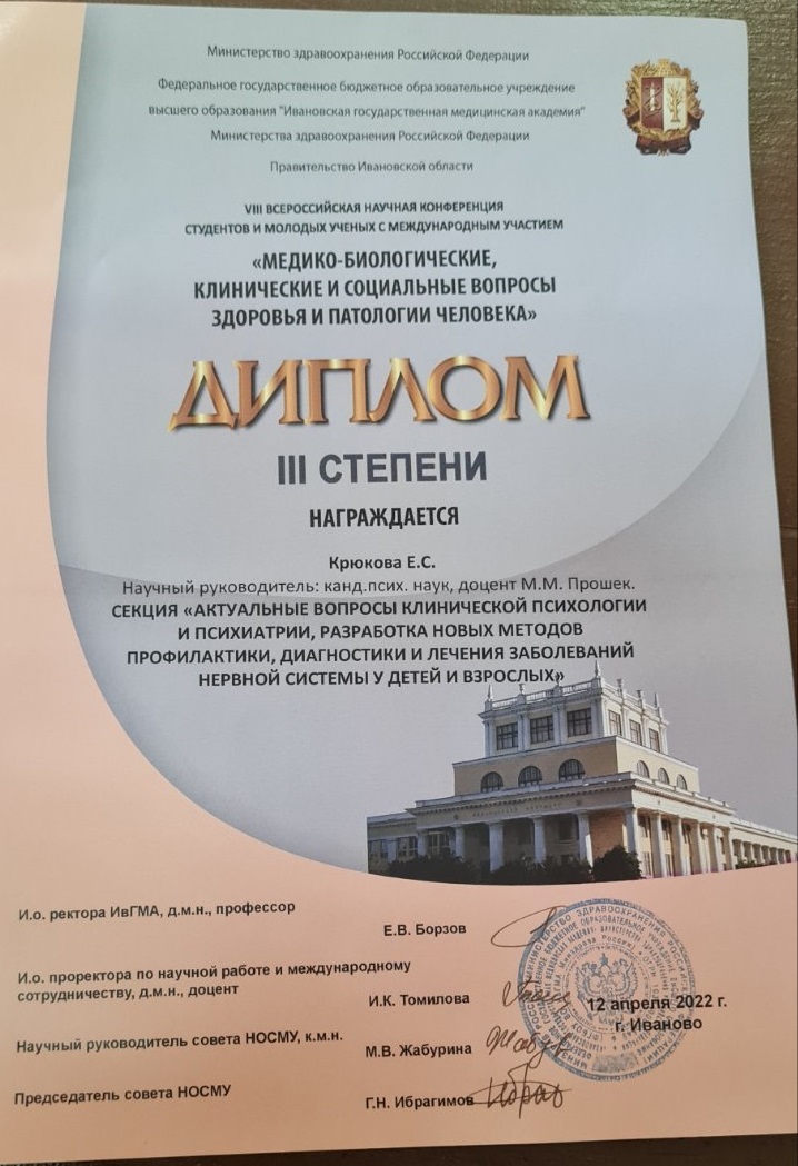 12 апреля в ИвГМА в рамках XVII Областного Фестиваля «Молодые ученые – развитию Ивановской области» прошла VIII Всероссийская научная конференция студентов и молодых ученых с международным участием «Медико-биологические, клинические и социальные вопросы здоровья и патологии человека».