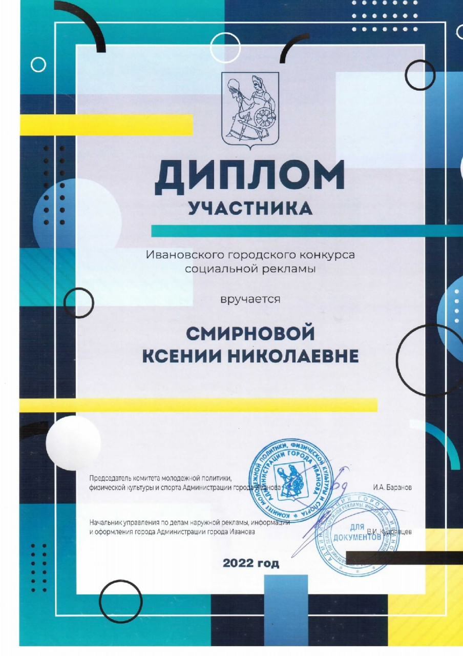 Специального диплома Ивановского городского конкурса социальной рекламы в номинации «Социальный плакат» удостоилась студентка 2-го курса направления «Реклама и связи с общественностью» ИвГУ Оксана Козлова.