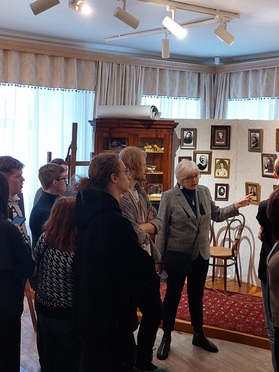 Яркие впечатления оставила поездка в удивительный город Плес с Домом-музеем Левитана, единственным в стране Музеем пейзажа, знакомство с принципиально новой экспозицией в музее «Присутственные места». Но самое главное – все музеи представила директор Музея-заповедника А.В. Чаянова. Завершилось путешествие логично – беседой студентов с директором о кадровой политике, факторах финансовой стабильности музея. Разговор об успешных проектах 2023-го, юбилейного для музея, года (М. Ростропович, В. Васильев, продолжение сотрудничества с Третьяковской галереей, научная конференция и т.п.) перешел в рассказ об уникальных коммуникативных и других человеческих качествах людей «ближнего круга» директора, их умении выстроить отношения с самыми известными художниками, музыкантами, режиссерами и др., создать вокруг музея главное – круг его друзей. В период ограничений Музей научился (и об этом трудном, но чрезвычайно полезном опыте также говорила А.В. Чаянова) работать с индивидуальным посетителем, который неслучайно приехал в Плёс.