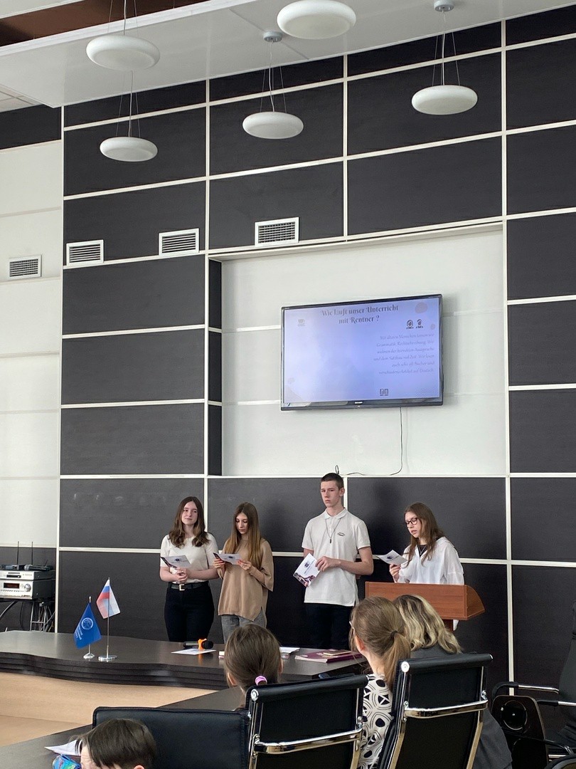 Основная цель этого мероприятия – показать возможности использования немецкого языка в профессиональной деятельности, а также в развитии навыков, необходимых для того, чтобы быть успешным на современном рынке труда. Креативность, уверенность, нацеленность на успех, понимание потребностей рынка – вот те качества, которые продемонстрировали участники конкурса.