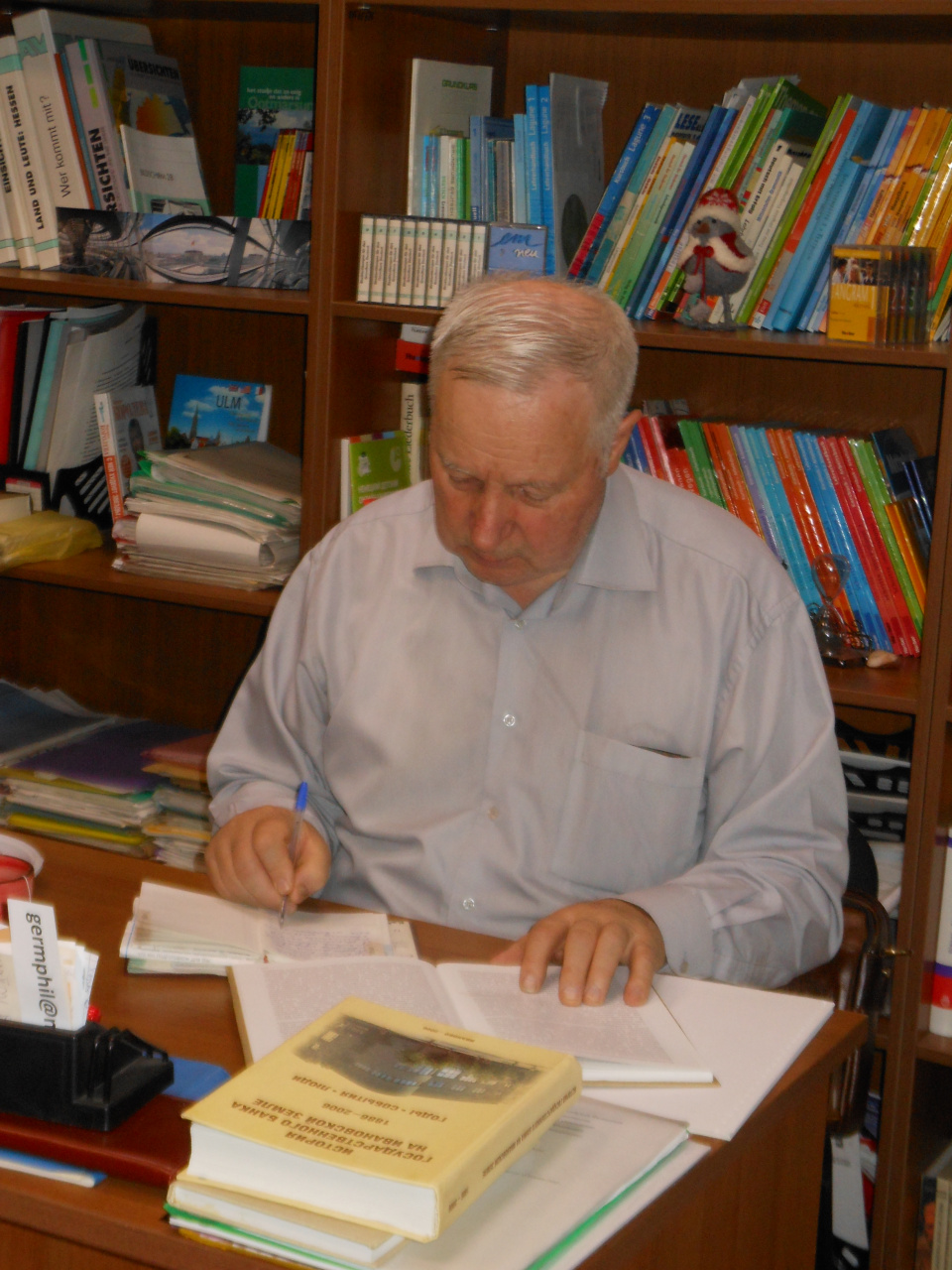 Нашего гостя в свою очередь заинтересовали книги профессора кафедры истории России В.С. Околотина «История государственного банка на Ивановской земле 1886-2006. Годы, события, люди» (Иваново, 2006) и «Из истории сельскохозяйственной кредитной кооперации в Иваново-Вознесенской губернии (1921-1929 гг.) (Иваново, 2018).