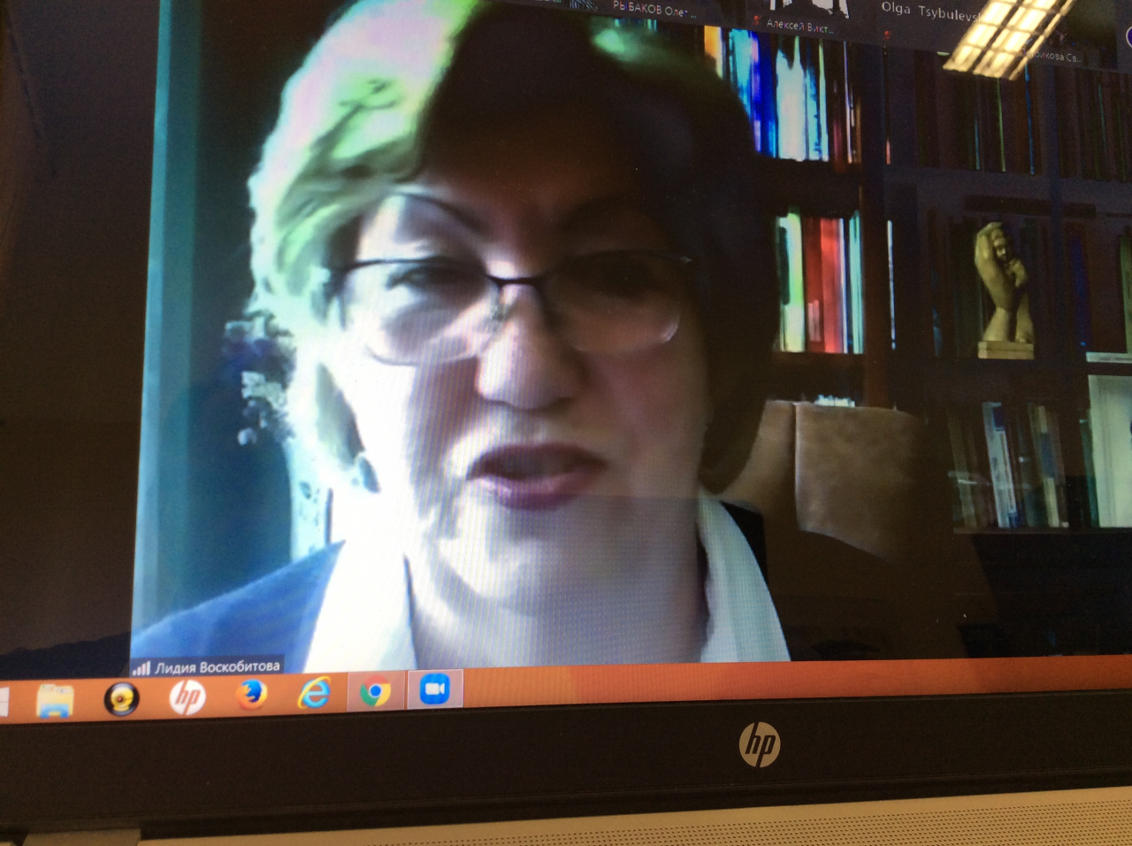 Проф. Л.А. Воскобитова отвечает на вопросы доц. Е.Л. Поцелуева. 28.04.21. Фото Е.Л. Поцелуева