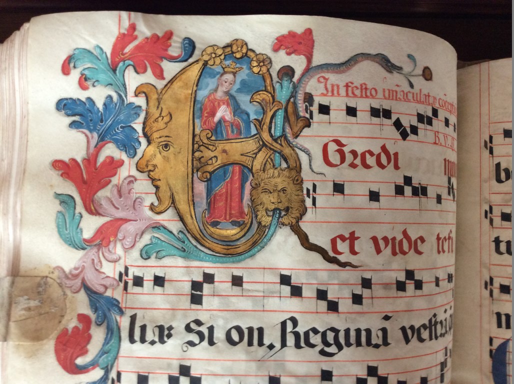 Рисунок и текст старинной книги. Библиотека Замка Курник, Польша. 22 июня 2019. Фото Е.Л. Поцелуева