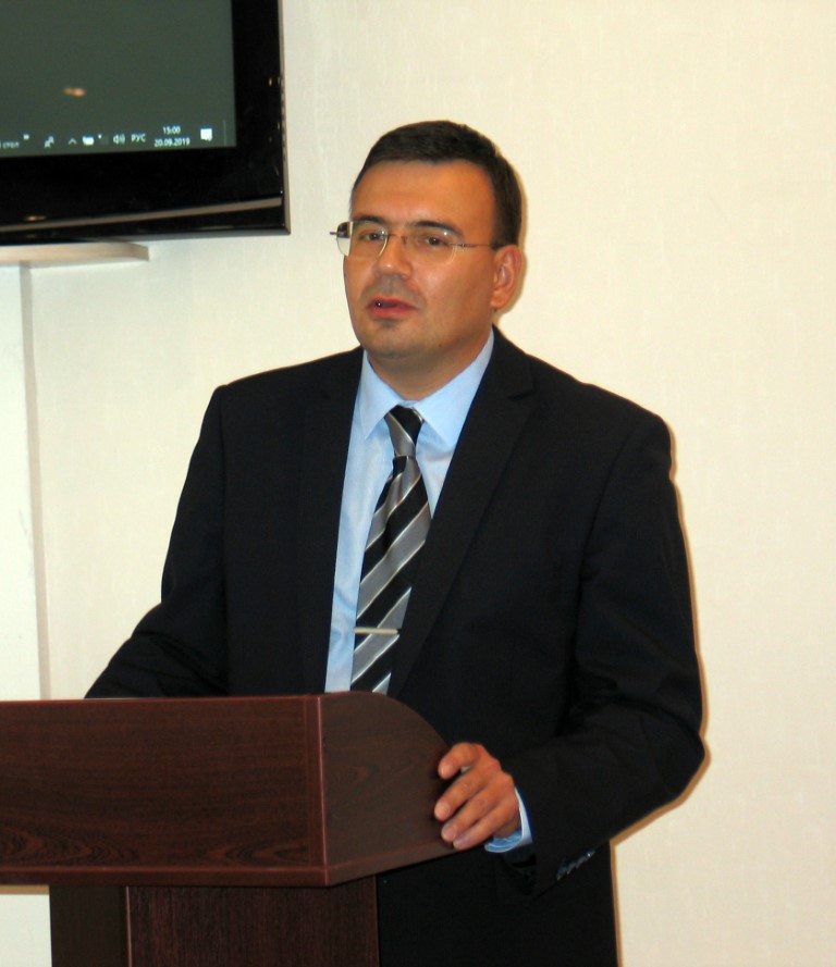 С докладом выступает к.ю.н., доц. М.Ю. Спирин, Самара. 20.09.2019. Фото А.В. Степанова