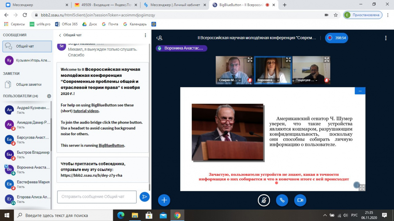 Работа конференции шла в дистанционном формате на базе платформы видеоконференций BigBlueButton и продолжалась с 14:30 до 21:06. Это была плодотворная, напряженная и полезная для обучающихся работа!