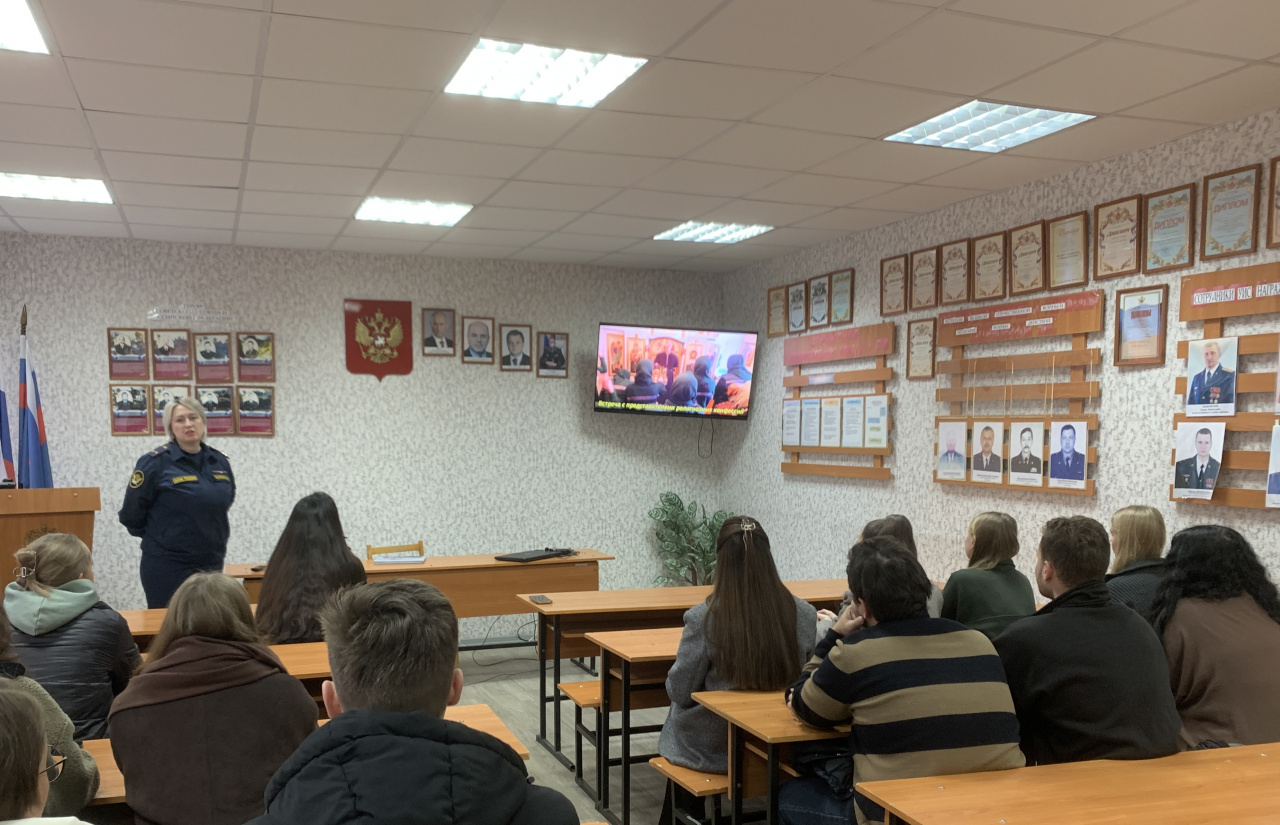 Во встрече приняла участие психолог психологической лаборатории учреждения Екатерина Олеговна Перелетова, которая разъяснила студентам отдельные аспекты работы по адаптации осужденных к жизни в новых условиях, об их подготовке к освобождению, продемонстрировала небольшой видеоролик о деятельности психологической службы в колонии.