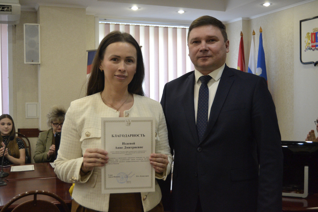 Благодарностью Главы города Иваново за помощь в проведении городского конкурса на тему «Защита прав потребителей» была отмечена доцент кафедры частного права, сравнительного правоведения и правотворчества ИвГУ Исаева Анна Дмитриевна.