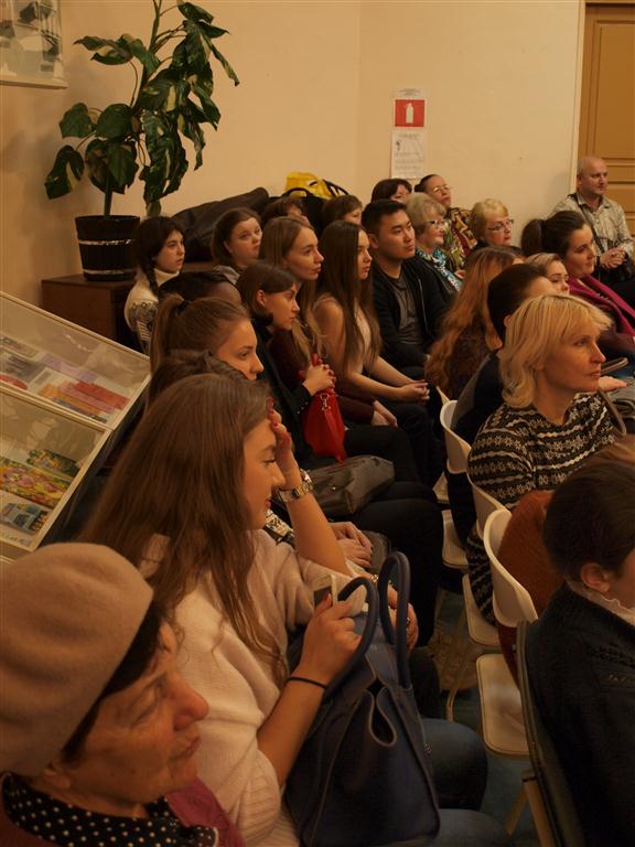 Насыщенный фактами рассказ был украшен песнями в стиле ретро, чтением стихов ивановских поэтов, сценкой «Принц на белом коне» в исполнении актеров театра книги «Корноватка». Настоящим подарком аудитории стали выступления гостей библиотечного творческого коллектива. Это был номер «Лошадиная фамилия» в исполнении Рустама Салояна – победителя конкурса «Живая классика – 2017», студента автотранспортного колледжа; выступление Александра Юрьевича Романова, известного ивановского бальмонтоведа и чеховеда, который лично был знаком с А.П. Чудаковым.