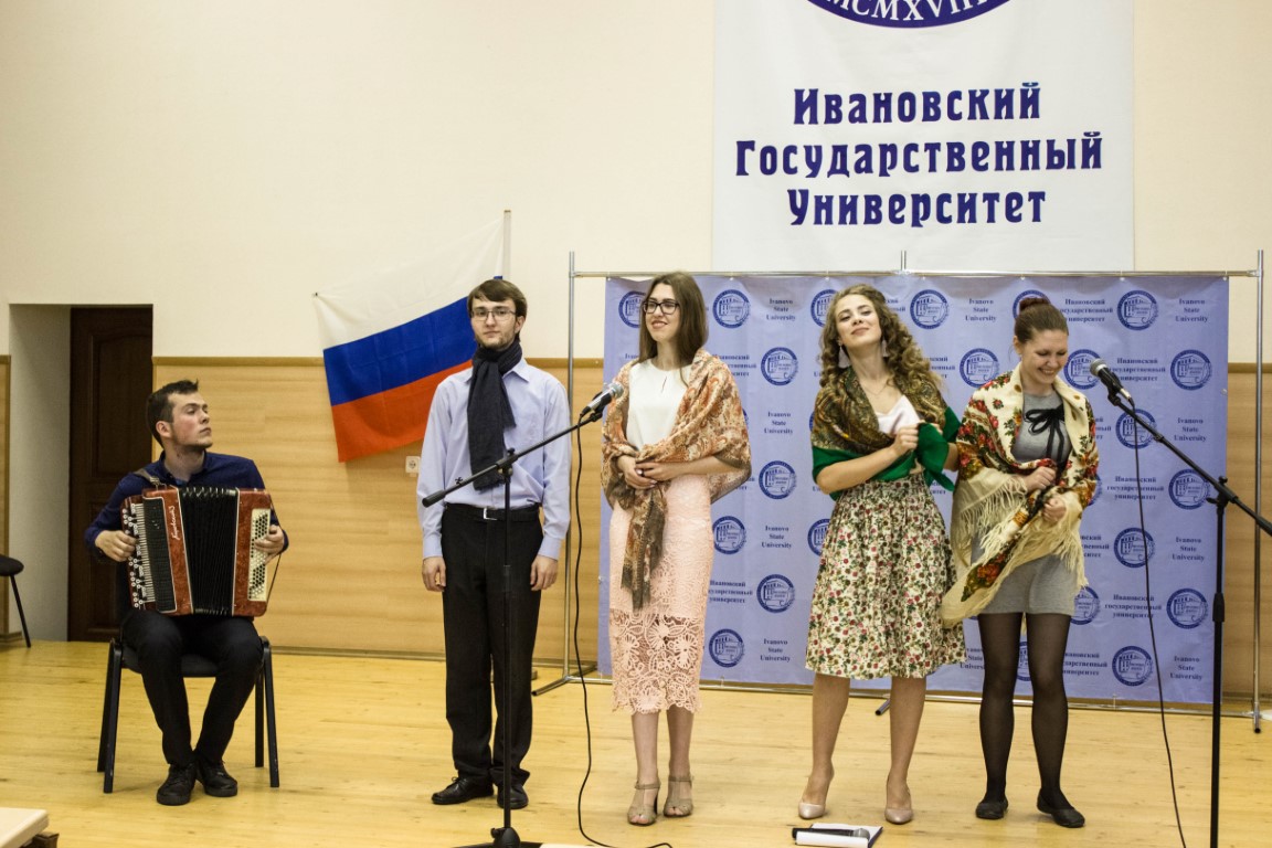 Студенты 2 и 3 курсов филологического факультета направления «Отечественная филология» продемонстрировали свои таланты в области художественного чтения поэтических произведений, знания западнославянских и южнославянских языков (чешского, польского, сербского), диалектов русского языка. Вместе с российскими студентами выступали юноши и девушки, приехавшие на обучение в ИвГУ из стран Азии и Африки.