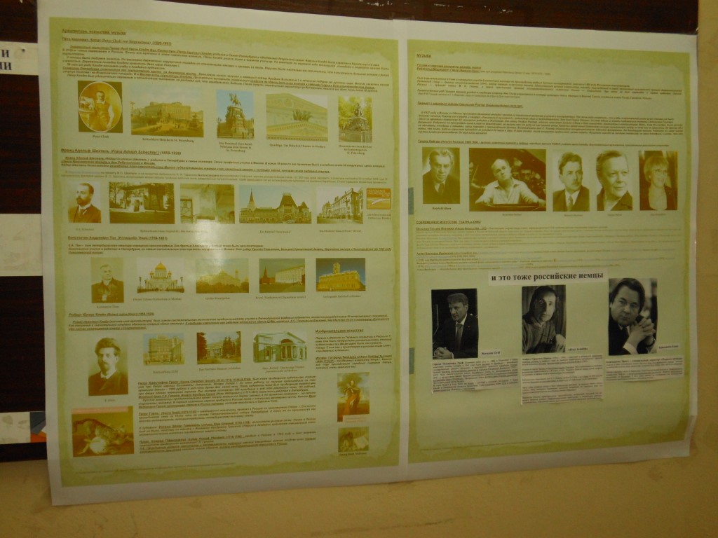 Популяризации немецкого языка и иллюстрации вклада российских немцев в культуру, науку и экономику России призван служить коллаж учебно-методического центра им. Гёте при ИвГУ «Немцы России» (оформление зав. центром Семеновой Т.Е.).