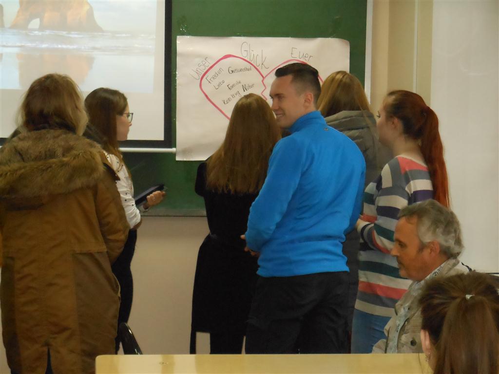 На этот раз тема семинара звучала так: «I Love me, weil…“ (Я люблю себя, потому что…), а далее студенты раскрывали ее смысл, говоря об индивидуальности и неповторимости каждого из нас, о необходимости любить и быть любимым и об открытости миру (Если ты благосклонен к нему, то вправе рассчитывать на его благосклонность тоже!) …