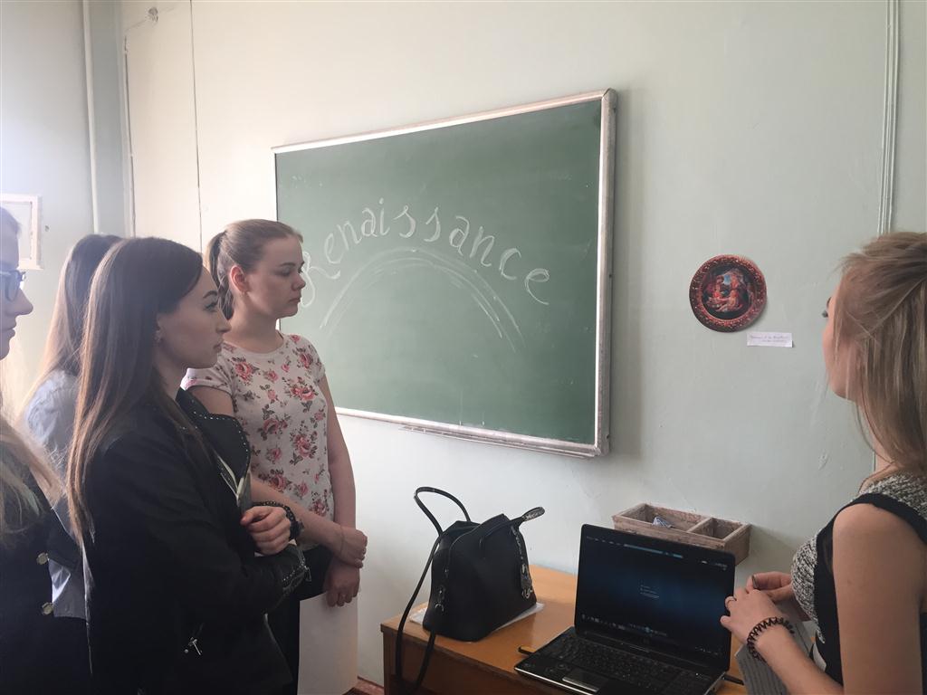 Первомайская неделя на кафедре английской филологии стала удивительно художественной! Студенты 3 курса провели три уникальных выставки в рамках практических уроков по аспекту Conversation по теме Painting и украсили аудитории работами художников разных эпох и направлений. Ребята получили задание организовать и провести выставку внутри своей группы как зачетный урок по теме «Живопись».