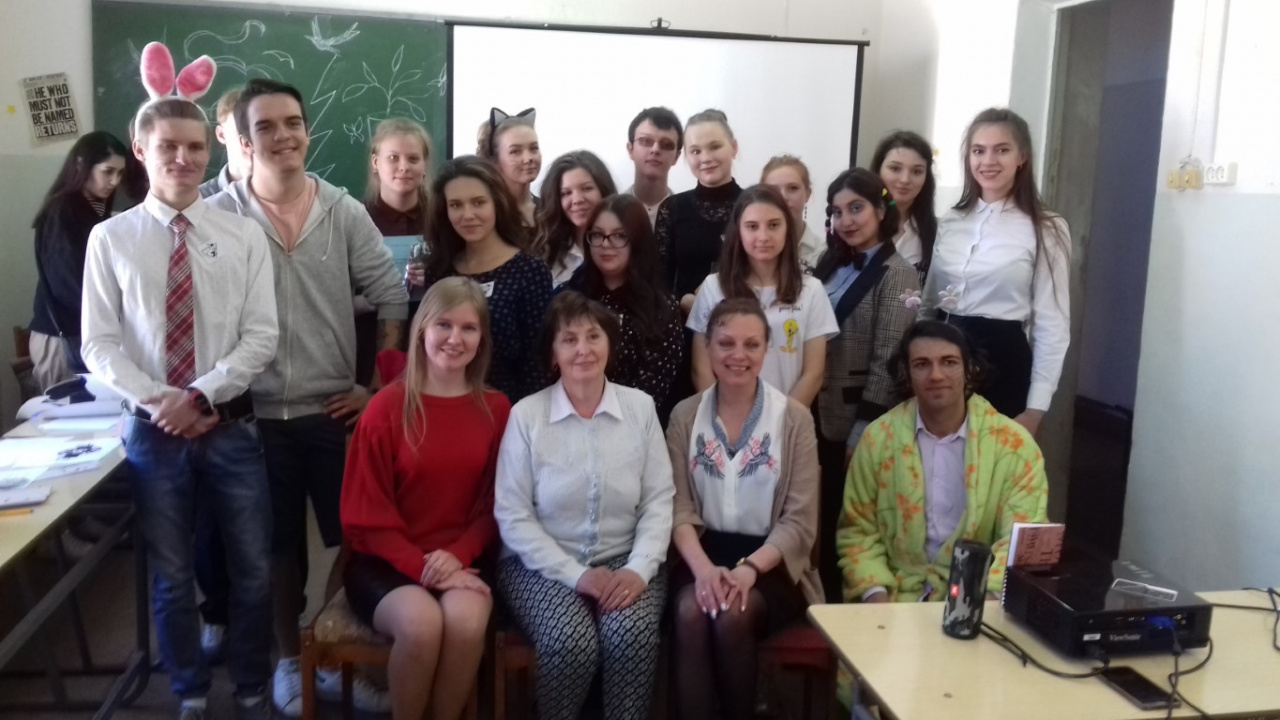 28 мая на кафедре английской филологии состоялся ежегодный праздник первокурсников «Freshmen’s Party». Мероприятие включило несколько конкурсов: презентация группы, эмблема, фонетический конкурс (чтение скороговорки), драматизация и исполнение песни.