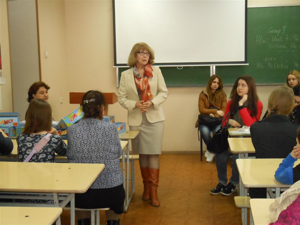 Участников игры напутствует зав. кафедрой германской и романской филологии Н.Д. Миловская