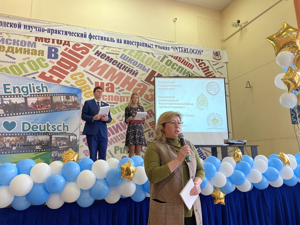 Уже стало доброй традицией участие Ивановского государственного университета, в частности факультета РГФ, в качестве партнера в Городском научно-практическом фестивале школьников на иностранных языках “Interlogos”. В этом году это мероприятие, проводимое на базе гимназии № 32, отметило свой первый юбилей – 5 лет.