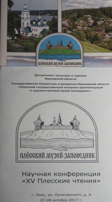 27–28 октября 2017 г. зав. кафедрой Е.А. Борисова, доцент А.А. Курганов и студенты Г. Игнатьева, А. Конева, А. Лисова приняли участие в работе Всероссийской научной конференции «XV Плесские чтения», посвященной 35-летию Плесского музея-заповедника.