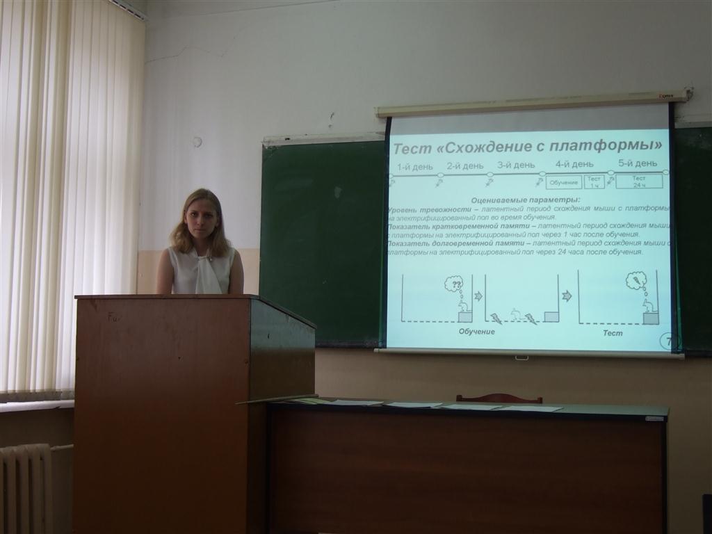 1 место – студентка 3 курса Александрова Ю.Р. («Оценка соединений ТГ-2112х и ТГ-2113х в качестве потенциальных нейропротекторов»; научные руководители: канд. биол. наук, доц. Зарипов В.Н. (ИвГУ), канд. хим. наук Шевцова Е.Ф. (ИФАВ РАН));