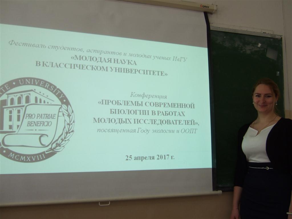 25 апреля в рамках фестиваля студентов, аспирантов и молодых ученых ИвГУ «Молодая наука в классическом университете» состоялась конференция «Проблемы современной биологии в работах молодых исследователей», посвященная Году экологии и ООПТ. На суд жюри было представлено более 40 работ, посвященных различным направлениям биологических исследований. Студенты, представившие лучшие доклады, награждены дипломами.