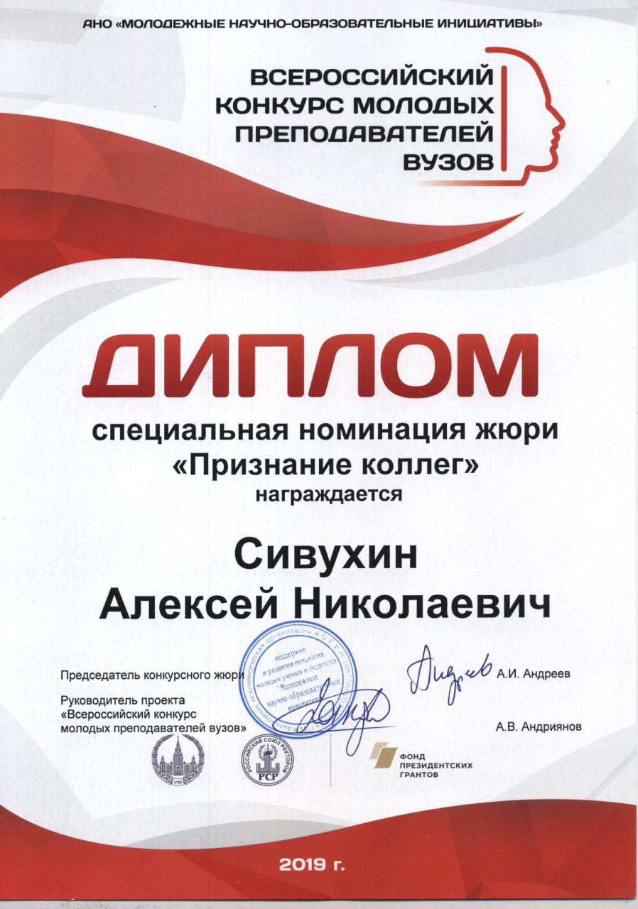 Поздравляем А.Н. Сивухина с успехом на Всероссийском конкурсе молодых преподавателей вузов!