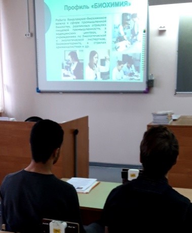 Важным компонентом системы профессиональной ориентации учащихся являются встречи и беседы преподавателей вузов с выпускниками – потенциальными абитуриентами. 17 и 23 октября 2019 г. в рамках профориентационной работы преподаватели кафедры общей биологии и физиологии Е.А. Борисова и А.Н. Сивухин организовали встречи с учащимися 11-х классов гимназии № 44 и общеобразовательной средней школы № 18 г. Иваново.