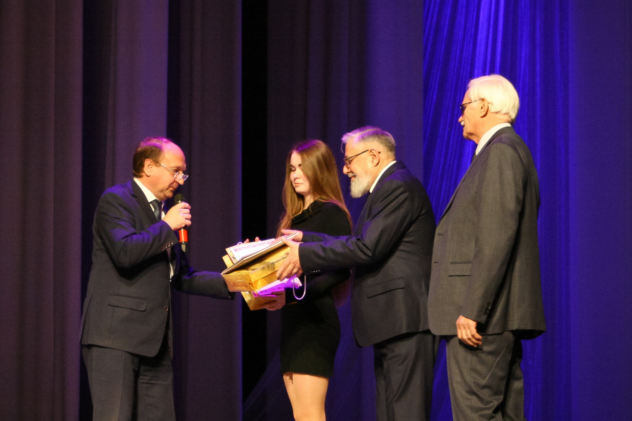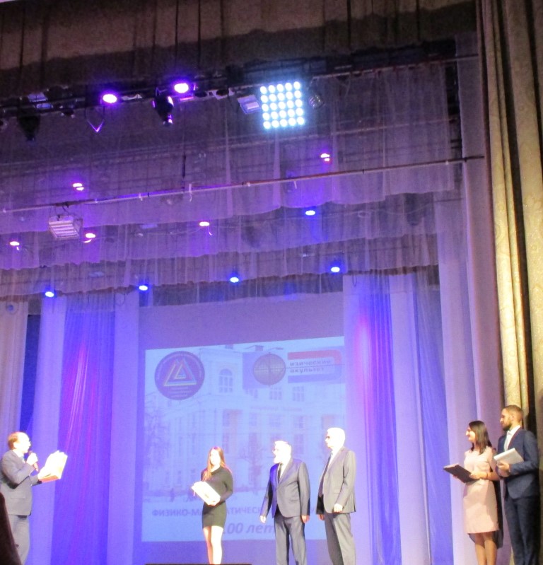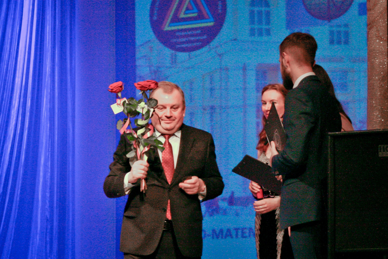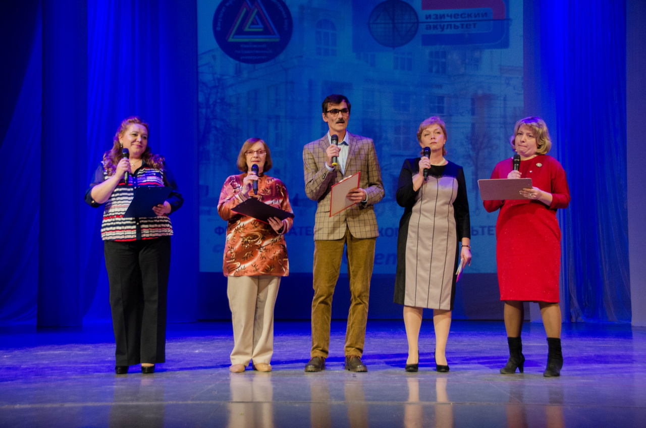 Состоялось награждение преподавателей и сотрудников факультетов, а потом начался концерт, в котором приняли участие не только студенты, но и преподаватели и выпускники обоих факультетов. В ходе концерта вспомнили значимые вехи факультетской истории, почтили память преподавателей, которых с нами, увы, уже нет. Выпускники математического факультета вручили нынешним студентам факультета МиКН сделанный ими двухметровый коллаж с памятными фотографиями. Более трех часов продолжался праздничный вечер. Надеемся, что он надолго запомнится всем участникам праздника.