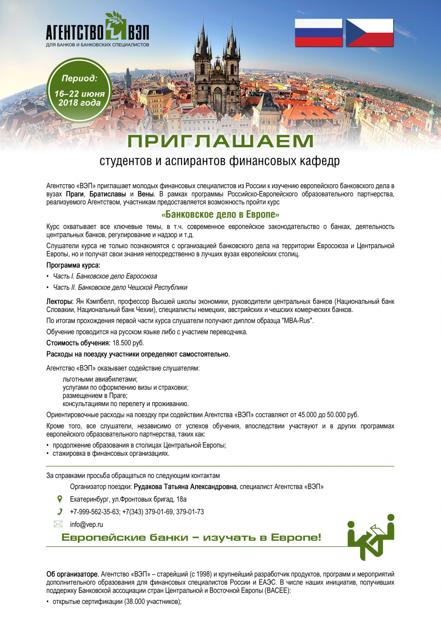 Агентство ВЭП предлагает студентам пройти уникальное ознакомительное обучение в одном из лучших вузов Чехии.