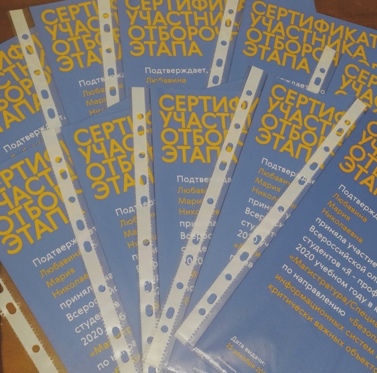 В конце декабря 2019 г. каждый студент получил сертификат участника отборочного этапа по каждому из направлений, в которых он участвовал. В начале января стало известно, кто прошел в заключительный (очный) этап, который длится в период с конца января до начала марта 2020 г.