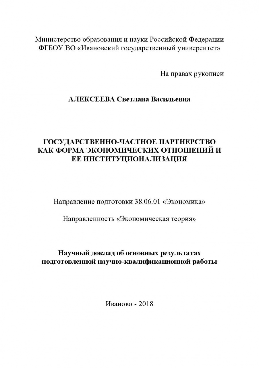 Тема НКР (диссертации) – «Государственно-частное партнерство как форма экономических отношений и ее институционализация».