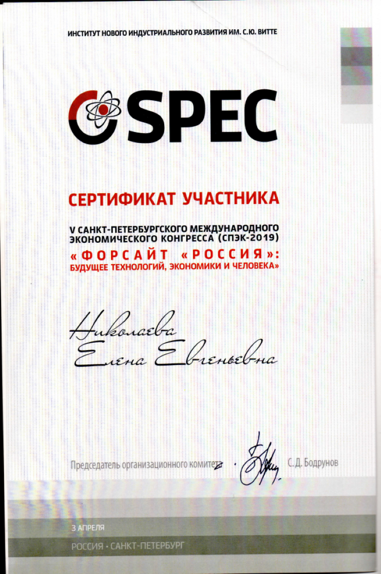 Зав. кафедрой экономической теории и региональной экономики, д-р экон. наук Е.Е. Николаева приняла участие в V Санкт-Петербургском международном экономическом конгрессе.