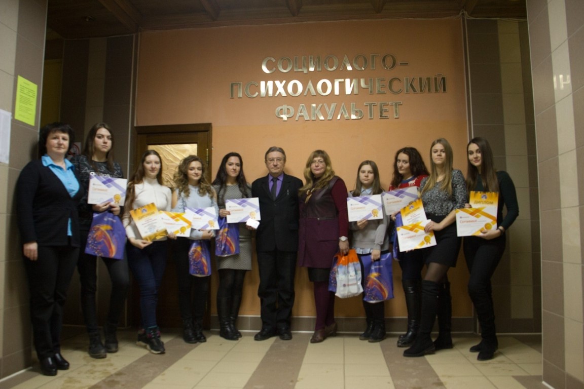 Студенты 2–4-х курсов социолого-психологического факультета направления «Социология» приняли участие во внутривузовском этапе конкурса «Образование и твоя карьера» от «НПО Консультант». 18 декабря они были награждены дипломами и подарками от компании.