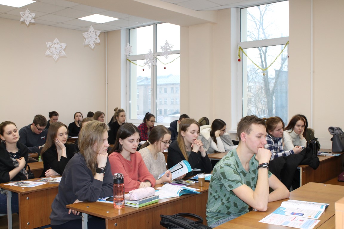 Перед студентами и преподавателями выступила Н.С. Кузнецова, начальник отдела организации назначения и перерасчета пенсий. Надежда Сергеевна ознакомила слушателей с особенностями системы пенсионного страхования в России, рассказала о правилах формирования и назначения пенсии, новеллах в законодательстве, а также об электронных услугах ПФР. Полученная информация вызвала интерес у студентов и преподавателей. Большая часть вопросов, адресованных лектору, была задана студентами 4 курса, которые в настоящее время осваивают учебную дисциплину «Пенсионное обеспечение». Молодые люди не только получили подробные ответы на вопросы, но и вместе с Н.С. Кузнецовой рассмотрели примеры расчета пенсии по существующему алгоритму. Всем слушателям предложены учебные пособия «Все о будущей пенсии: для учебы и жизни» и информационные лифлеты ПФР.