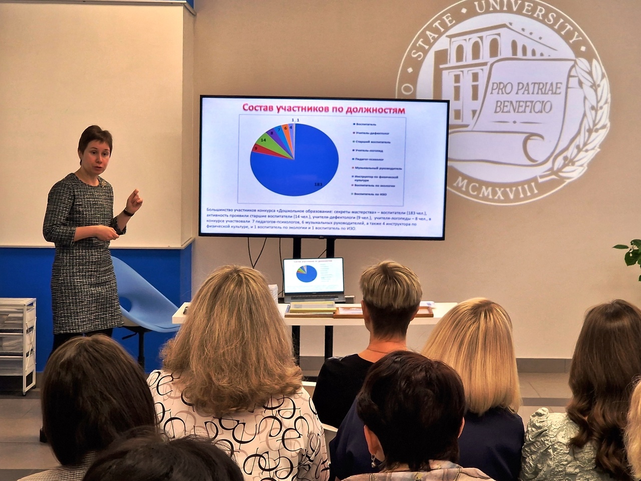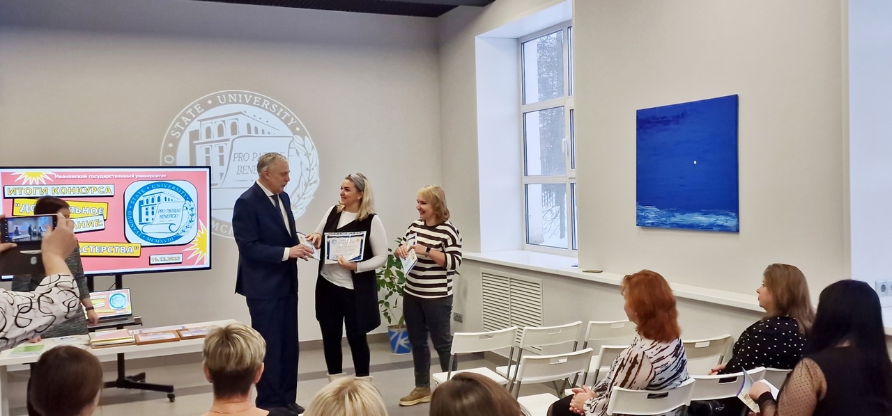 19 декабря в Университетской Точке кипения состоялось подведение итогов регионального конкурса «Дошкольное образование: секреты мастерства». Победители и призеры награждены дипломами и памятными подарками от кафедры непрерывного психолого-педагогического образования ИвГУ. Преподаватели кафедры Кузьмин С.В. и Шакирова Е.В. познакомили участников с результатами конкурса, основными тематическими направлениями и решениями, выделенными в ходе анализа работ.